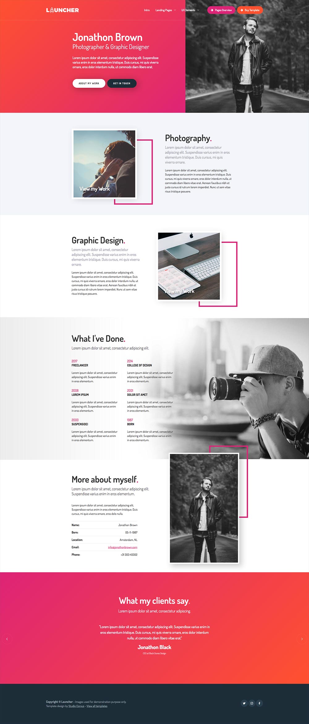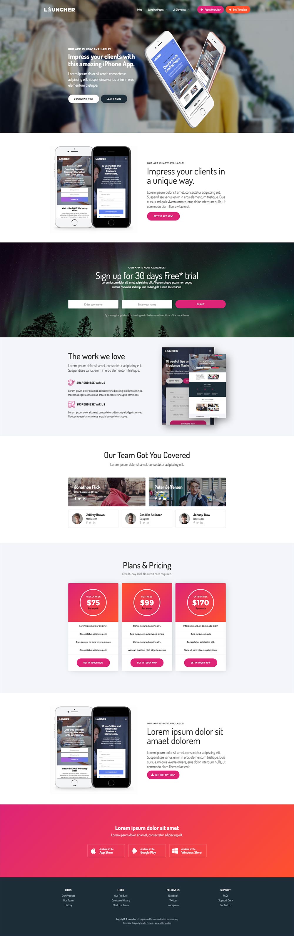 Overview of all page variations in this template: